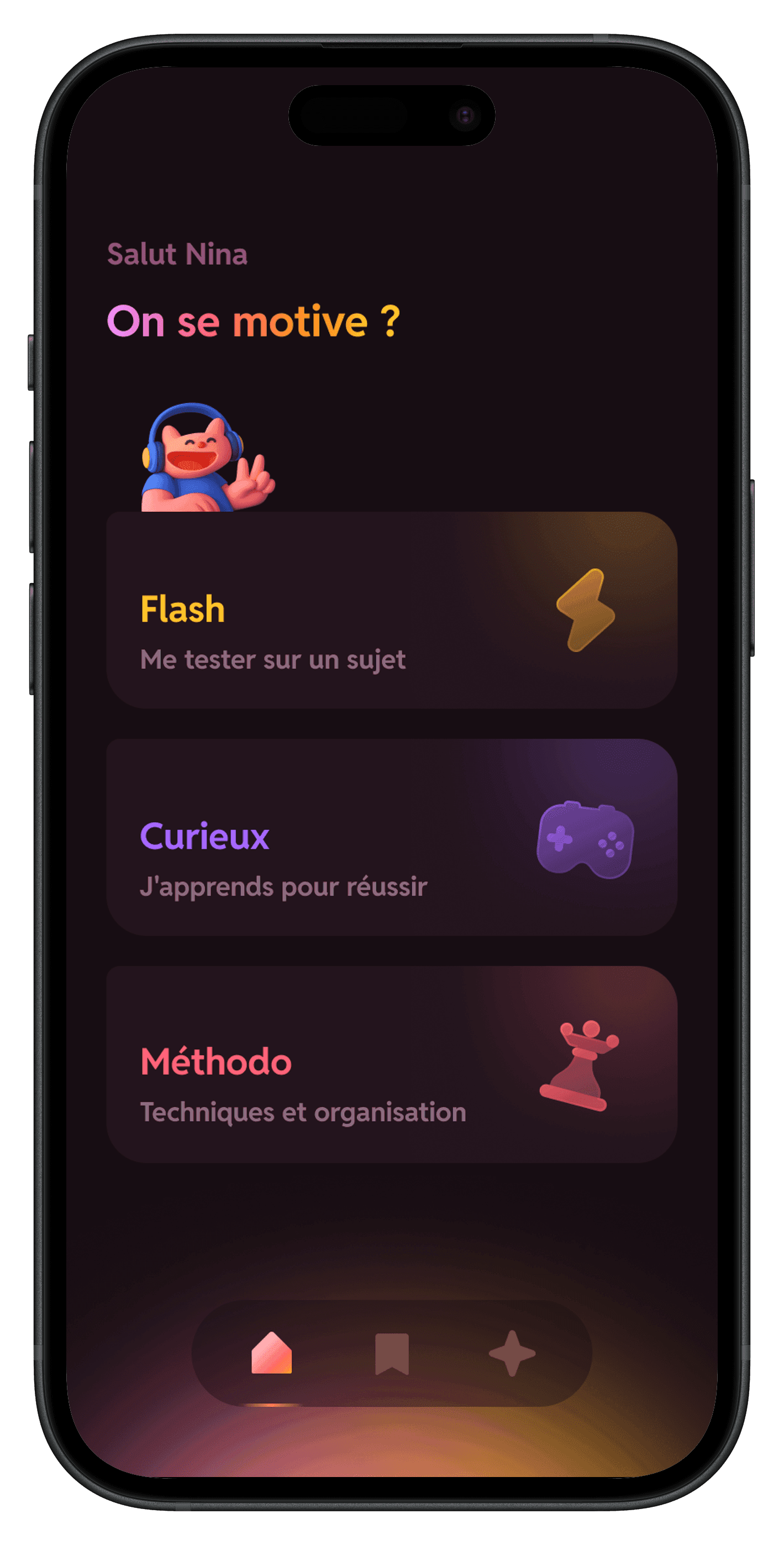 Motiv te guide avec des parcours flash et ciblés selon tes objectifs. À chaque session, tu progresses, tu oses et tu prends confiance. Prépare-toi à progresser fort à l’oral ! Nous, on mobilise les super pouvoirs de l’IA au service de TON INTELLIGENCE et de ton développement cognitif. Passe ton chemin si tu cherches une app de triche ou de bachotage.